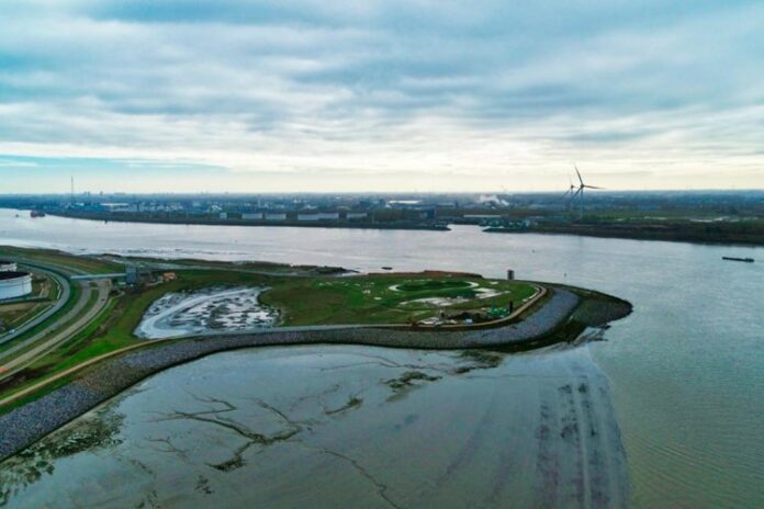 For the construction of the dam, dredged material previously deposited on the site was reused, so no new soil had to be brought in. The project received European support for this through the Smartsediment initiative. This supports the North Sea estuaries in large-scale maintenance works to create a sustainable estuary.
