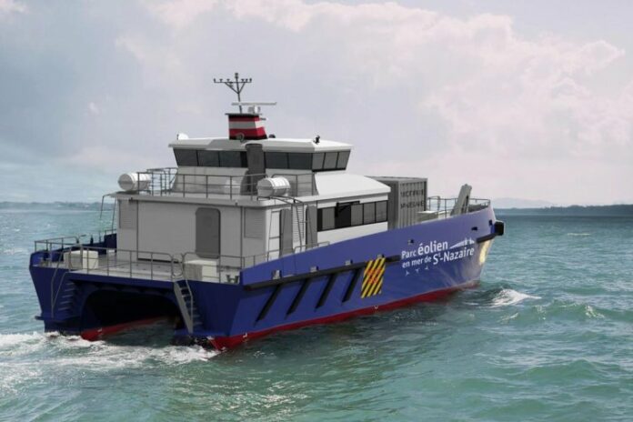 The innovative design of this new unit has been entrusted to MAURIC, a naval architecture firm based in Nantes and a member of Neopolia, while construction will be carried out by French shipyard OCEA, a leader in the design, construction, and maintenance of aluminium ships, with production sites based in La Rochelle, Sables d’Olonne, Fontenay-le-Comte and Saint-Nazaire. The CTV will sail under the French flag and will have the mission of ensuring the transfer of technicians (up to 24 technicians per crossing) between the coast and the farm for maintenance of the electrical substation and of the wind turbines in their operating phase.