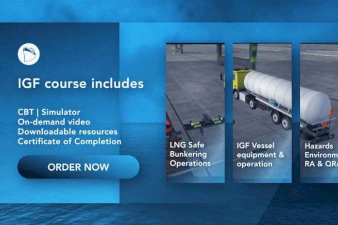 IGF Code: Advanced training (blended learning – online theory course, LNG Bunkering Simulator and Firefighting Simulator, online build-in simulator assessment).