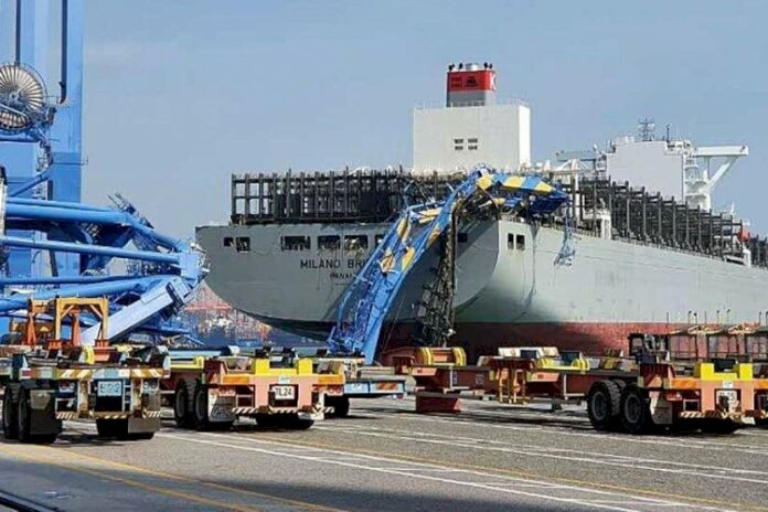 The 13,870TEU container ship Milano Bridge has collided with a gantry crane at Busan Port, South Korea, which caused the collapse of the crane.