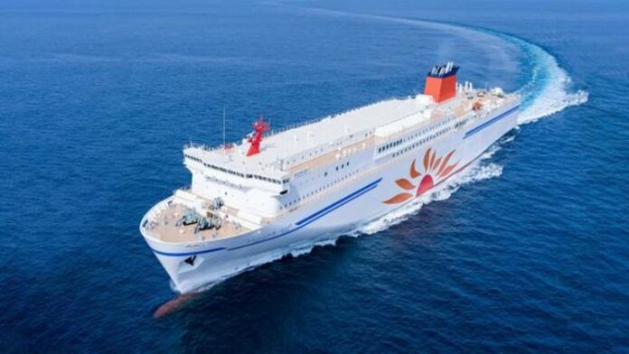 TOKYO-Mitsui O.S.K. Lines, Ltd. announced that the newly built large-scale ferry Sunflower Kirishima operated by its group company Ferry Sunflower Co., Ltd. was launched on September 15, and with many passengers aboard, departed the Nanko Sunflower Terminal in Osaka Prefecture for the Port of Shibushi, Kagoshima Prefecture.