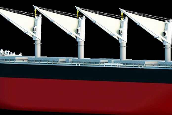 Mitsui O.S.K. Lines has announced that MOL, MOL Drybulk, Oshima Shipbuilding and Iknow Machinery have reached an agreement on joint research and development of the “Iknow Delta Sail Crane”, a sail that can be mounted on ships’ cargo handling cranes and similar equipment to boost propulsion force.