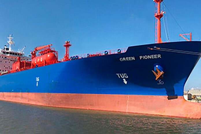 Mitsui O.S.K. Lines, Ltd. has decided to re-enter the ammonia transport business with the Green Pioneer, a 35,000 cbm-type ammonia /LPG carrier, and signed a time charter contract with Trammo, a leading international merchandising and ammonia trading company.