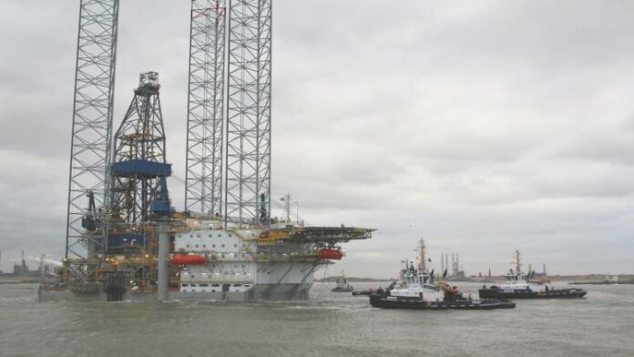 The rig is located by the Venture platform carrying out the plugging of development wells as part of ExxonMobil’s decommissioning of the Sable Offshore Energy Project.