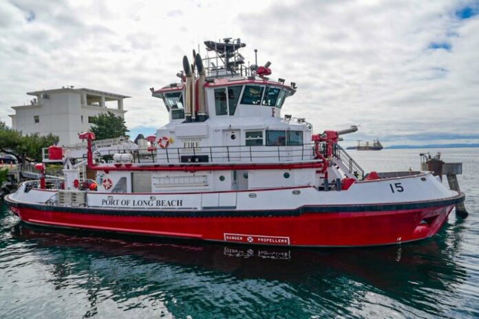 Fireboat Protector entered service in 2016, followed a year later by its companion, Vigilance, heralding major advancements in harbor firefighting and emergency response capabilities at the Port of Long Beach. The fireboats are each equipped with 10 water cannons capable of sending up to 41,000 gallons per minute to a distance of up to 600 feet, or the length of two football fields.