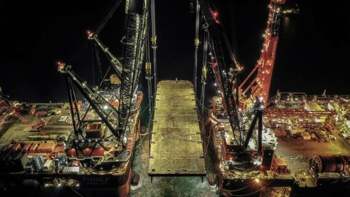 The test involved two dynamically-positioned vessels with four cranes working in parallel: Thialf and Balder, two of the world largest semi-submersible crane vessels, both owned and operated by Heerema. As soon as Sleipnir, the largest semi-submersible crane vessel ever built, is in full operation, the company says it will be ready to perform the ultimate QUAD lift using its two giants with a combined lifting capacity of Thialf’s 14,000mt and Sleipnir’s 20,000mt.
