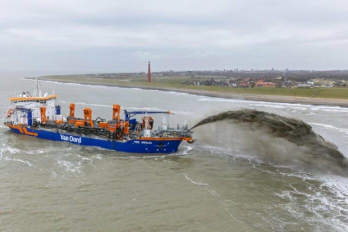 At Den Helder, the Netherlands, the brand-new vessel is reinforcing the coastline by placing more than 3.5 million cubic metres of sand in a deep trench just off the coast. The contract was awarded by Rijkswaterstaat, the operational arm of the Dutch Ministry of Infrastructure & Water Management.