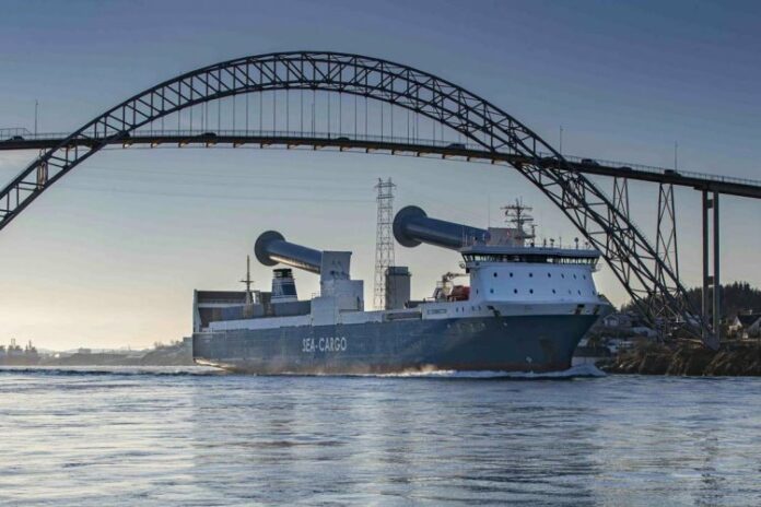 Norsepower Oy Ltd., the leading global provider of auxiliary wind propulsion systems, has successfully installed two 35m tall Rotor Sails for SEA-CARGO, a leading logistics provider in the North Sea market. This installation heralds the world’s first tiltable Rotor Sail, showcasing that vessels that have to negotiate height restricted routes can benefit from this fuel and emissions-saving solution.