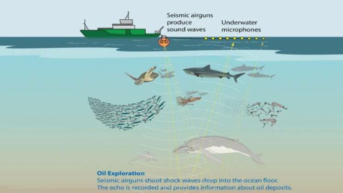 Seismic ships are used for oil and gas exploration below the seabed. Their sounds can infiltrate into hundreds of kilometres into the ocean floor. Namely, these ships’s airguns emit sound every ten to fifteen seconds, often for a whole. In addition, hydrophones are also used to analyze the sound that reflects back to the sea surface.