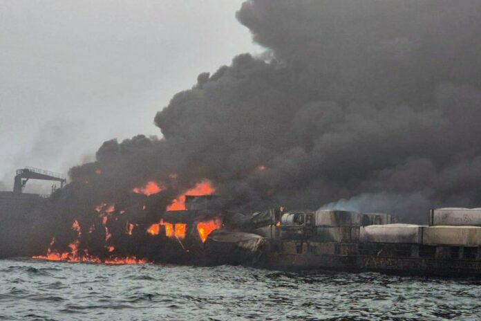Both vessels are said to have sustained “significant damage” due to the impact of the collision and the subsequent fire.