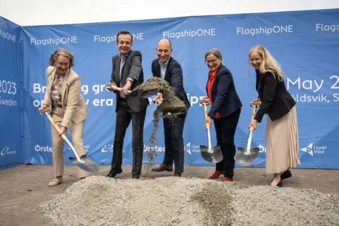 Among the speakers at the event were also Klimatklivet, a part of the Swedish Environmental Protection Agency, who have supported FlagshipONE with SEK 151 million. The groundbreaking was done by Anna Dahlberg, State Secretary to the Prime Minister of Sweden; Anna-Britta Åkerlind, Chair of the municipality board of Örnsköldsvik Municipality; Anders Nordstrøm, COO of Ørsted P2X; Claes Fredriksson, founder and CEO of Liquid Wind; and Kristina Säfsten, CEO of Övik Energi.