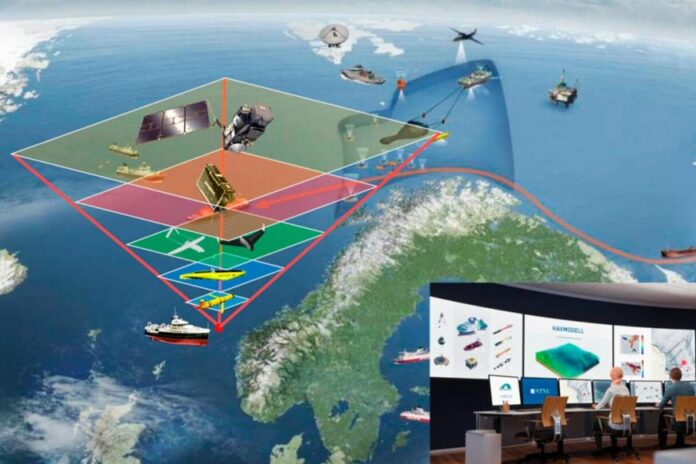 The observation pyramid is based on the use of different robot platforms to focus on the same time and place to survey an ocean area: Autonomous underwater robots, an uncrewed surface vessel, an autonomous flying drone and NTNU’s research satellite that collects ocean data were in operation.