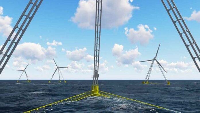 The system combines single point mooring systems with those of tension-leg platform systems to create a more efficient downwind structural design, resulting in significant weight reduction, compared with current spar and semi-submersible systems.