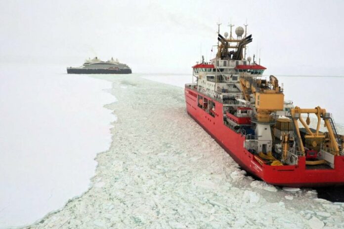 RRS Sir David Attenborough (SDA) has collaborated with the cruise ship Le Commandant Charcot in its efforts to deliver critical science cargo to the English Coast, Antarctica in support of the International Thwaites Glacier Collaboration.