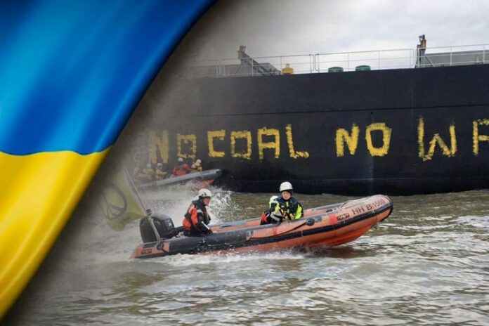 The arrival of this ship comes amid growing international and civil society rejection of Russian imports. This week dockers in France, the UK and the Netherlands refused to unload gas tankers coming from Russia. Yesterday, 20 activists from Greenpeace Germany on board six inflatables painted “No Coal” and “No War” on the side of a ship loaded with 100,000 tons of Russian hard coal as it approached the port of Hamburg.
