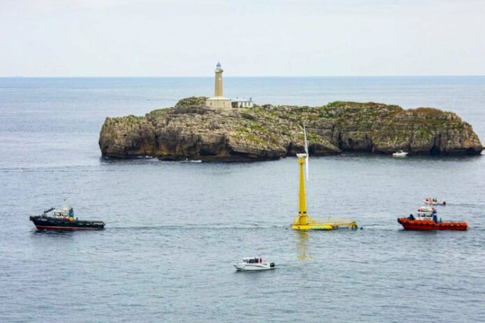 The Spanish engineering company Saitec Offshore Technologies has set off towing operation from Astander’s Dock Pontejos, where it was tied up for its set-up, towards its destination 800 meters away off Cantabrian coast. Then, the already-laid mooring lines were retrieved from the seabed and the platform hook-up was accomplished in less than 3 hours. Finally, commissioning offshore has successfully been completed so the turbine is ready to operate.