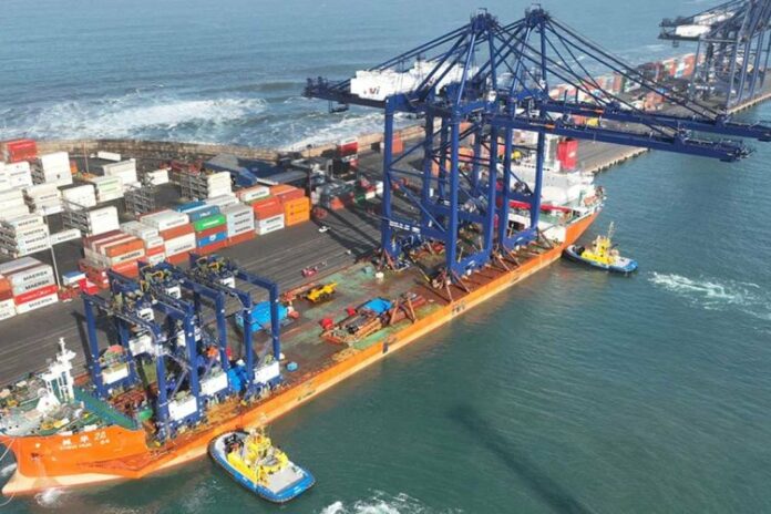 The two new Ship-to-Shore (STS) Super Post Panamax and two electric Rubber Tyred Gantry (RTG) cranes arrived on board the Zhen Hua 24.