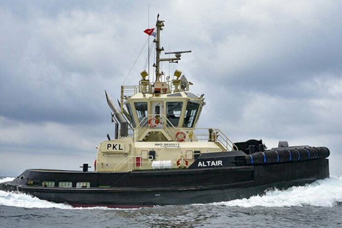 The latest delivery is a Robert Allan Ltd. designed RAmparts 2200 Class 50t BP ASD tug, the 8th of the series from Sanmar. Originally named simply Sirapinar VIII, AS PKL Flote has re-named her ALTAIR. Sanmar is currently building the 18th sister of the series.