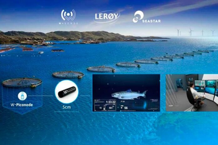 W-Pico, whose market ready. fully industrialised version is scheduled for Q3 2023 is the smallest existing modem (1cm by 5cm), with an integrated sensing board for real-time fish welfare and fish activity monitoring (fish position and depth, fish activity).