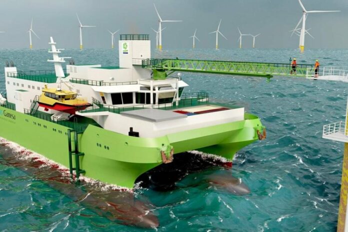 DEME’s SOV ‘Groene Wind’ will be chartered by Siemens Gamesa Renewable Energy for the Rentel and Mermaid & Seastar (referred as SeaMade) offshore wind farms in Belgium. Uniquely, it is the first SOV to serve three different wind farm sites. The SOV features a Small Waterplane Area Twin Hull (SWATH) design, which ensures low wave impact on movements when approaching the wind turbines, compared to a monohull SOV. The vessel will enable safe and efficient transfers in all weather conditions, being the first DP2, twin-hulled SOV in the world.