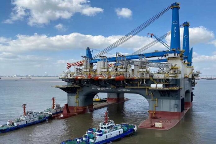 At 1040 on October 9, under the strict maintenance of the Nantong Maritime Safety Administration’s sea cruiser and 6 high-horsepower tugboats, the world’s most advanced semi-submersible heavy crane life platform “OOS Serooskerke” slowly left China Merchants Heavy Industries (Jiangsu) Co., Ltd. outfitted the dock, completed the formation and started the towing journey out of the river.