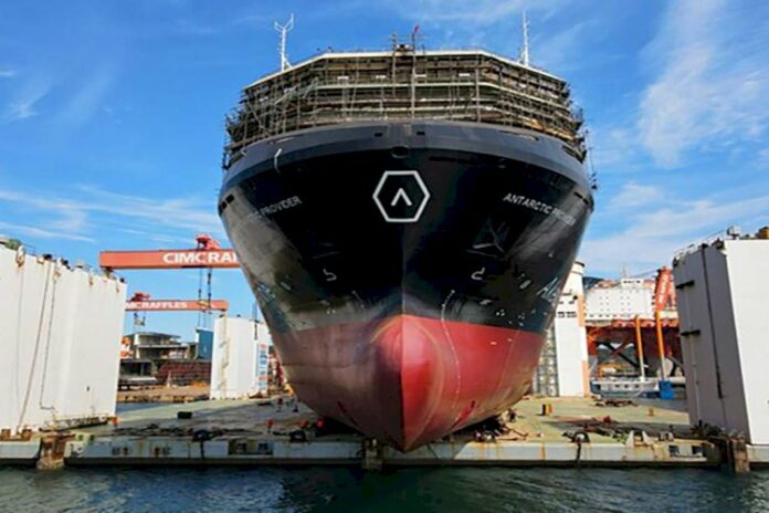 The vessel, as first built, is facing the challenge of global COVID-19 during project construction and effected correspondingly on the key blocks construction, material and equipment delivery and so on. CIMC Raffles is sticking to the plan nodes, putting into superior technical force, management and building team, working together to guarantee the quality, doing best to catch up progress. Under support of government, ship owner, class, designing company, vendors and subcontractors, the project achieved the launching as plan smoothly, providing a strong guarantee for project delivery before the krill harvest season.