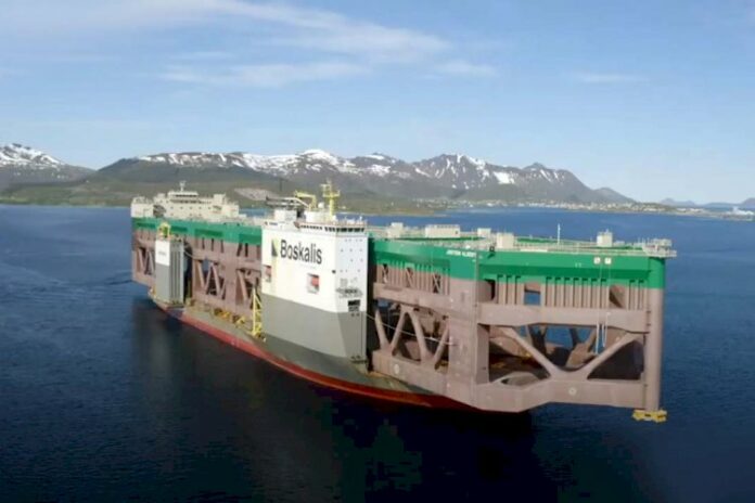 During the next few days, it will first be prepared for release from the cargo vessel BOKA Vanguard, and then transported to the site on the outside of Hadseløya.