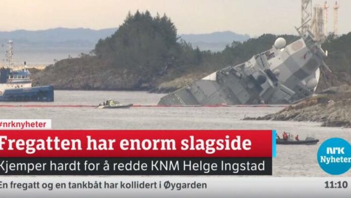 “The frigate lost steering control and drove onto land with 137 people onboard,” Eirik Valle of the Norwegian Coastguard told NRK. The frigate could still capsize, the report said.