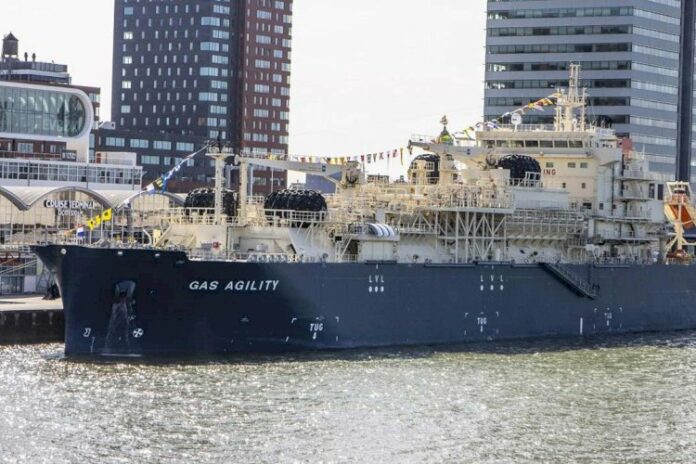 The 18,600-m³ GTT Mark III Flex membrane vessel has been named “Gas Agility”.