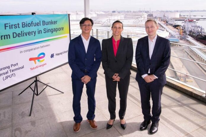 TotalEnergies Marine Fuels has successfully completed its first refuelling of a Hapag-Lloyd container vessel in Singapore with sustainable, UCOME (Used Cooking Oil Methyl Ester)-based, marine biofuel.