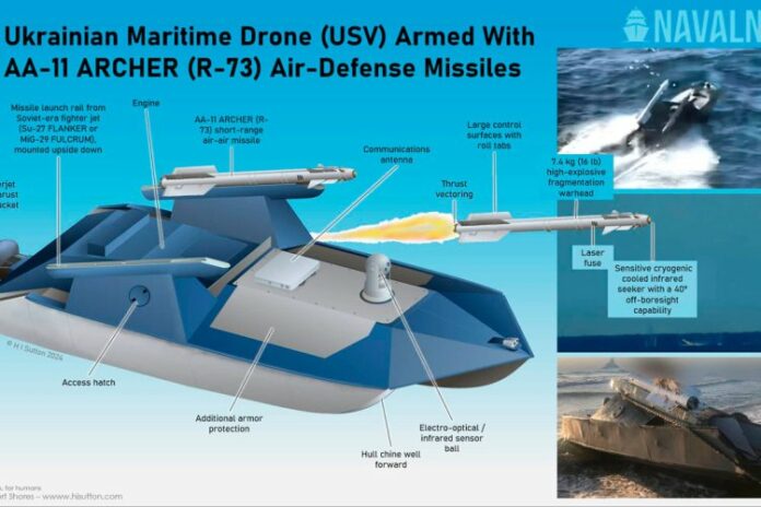 Until now Ukraine’s maritime drones (USVs) have been most vulnerable to aircraft. They are essentially defenseless against a helicopter armed with a machinegun. Now, with some USVs armed with potent air-defense missiles, Russian pilots may think twice about approaching them.