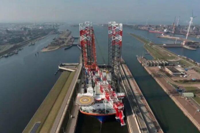 To reach its destination, the gigantic vessel had to navigate through the world’s largest sea lock in IJmuiden, an impressive sight. Outfitting and finishing will take place in the Netherlands, where the vessel will be christened before embarking on its first offshore wind project.