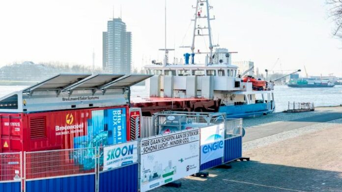 The trial started in December. Mainly vessels from Wilson shipping company have taken part so far. In total, five different mobile shore power systems will be tested over a five-month period. Engie, Bredenoord and Skoon’s hybrid system is currently being tested: a Big Battery Box, integrated with a motor generator on biofuel (HVO).
