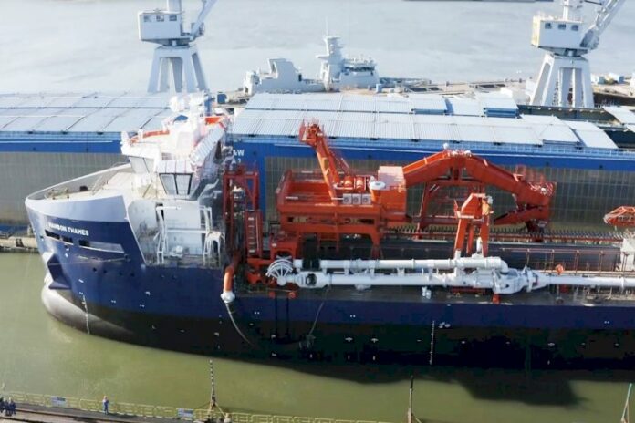 Following the launch, Damen will complete work on the vessel, to be named Hanson Thames, and afterwards undertake commissioning, including of dredge equipment and screening installation from Damen Dredging Equipment in the Netherlands and a dry unloading system from PLM Cranes.