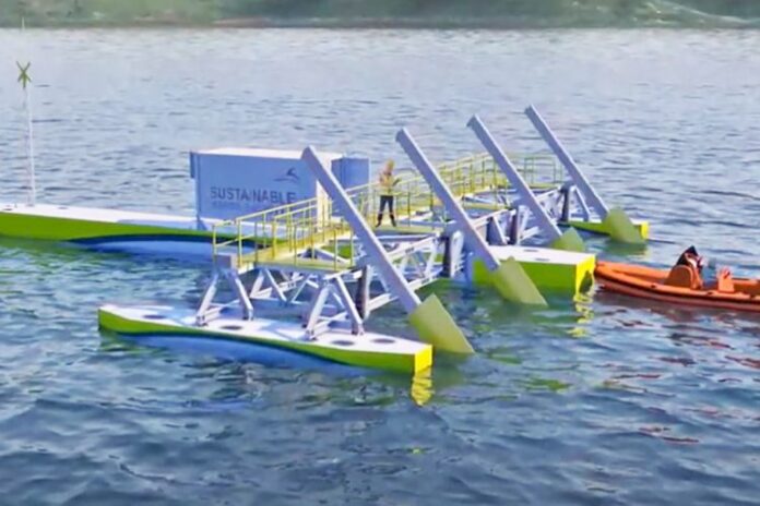 Once moved to Nova Scotia (Canada) PLAT-I was reassambled in under four weeks. Installed in Grand Passage using a small self propelled barge and two lobster boats.