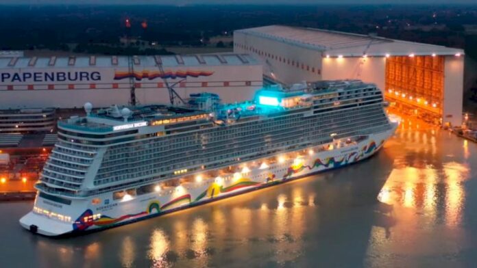 Norwegian Encore will remain in the shipyard port for further out-fitting work and on-board trials until its passage through the river Ems up to the North Sea, which is expected to take place end of September.