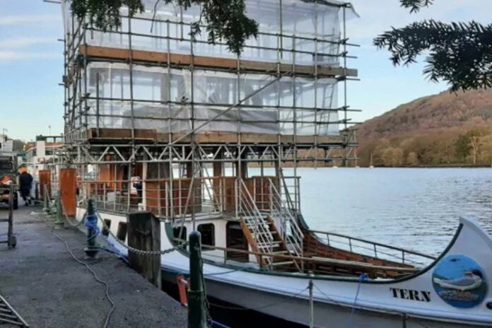 Work is now underway on the 120-tonne craft at the Lakeside Pier, with scaffolding erected around Tern’s existing bridge to enable work to begin on stripping out the electrics before replacing the structure in March of this year.